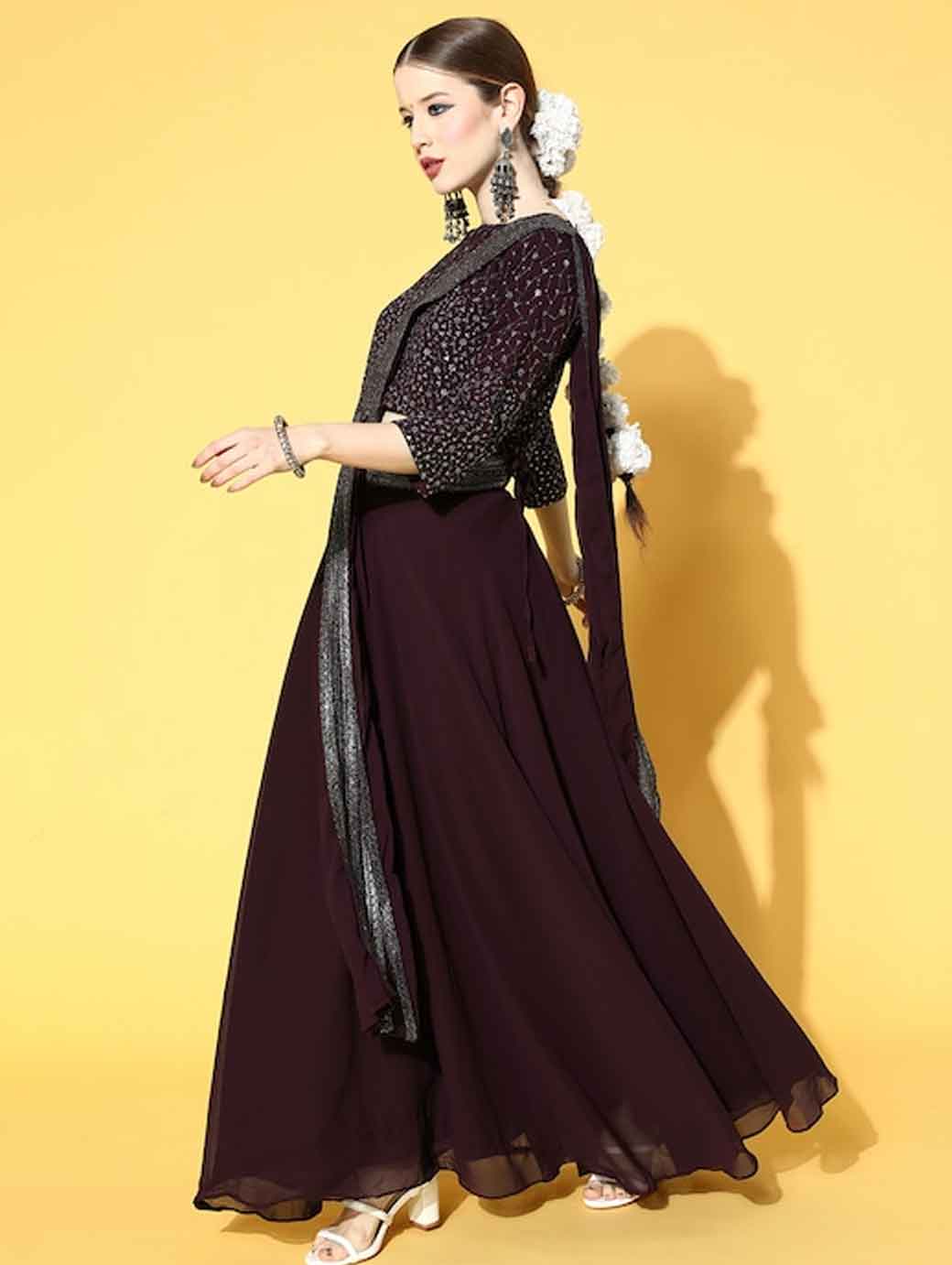 Deep Burgundy Embroidered Ready to Wear Lehenga Choli with Dupatta