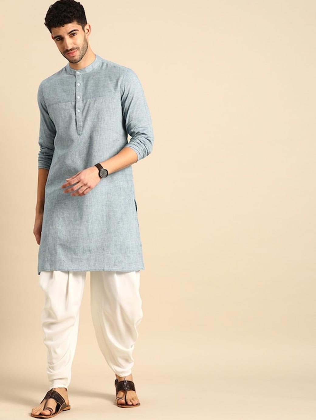 Blue & White self design Kurta with Patiala
