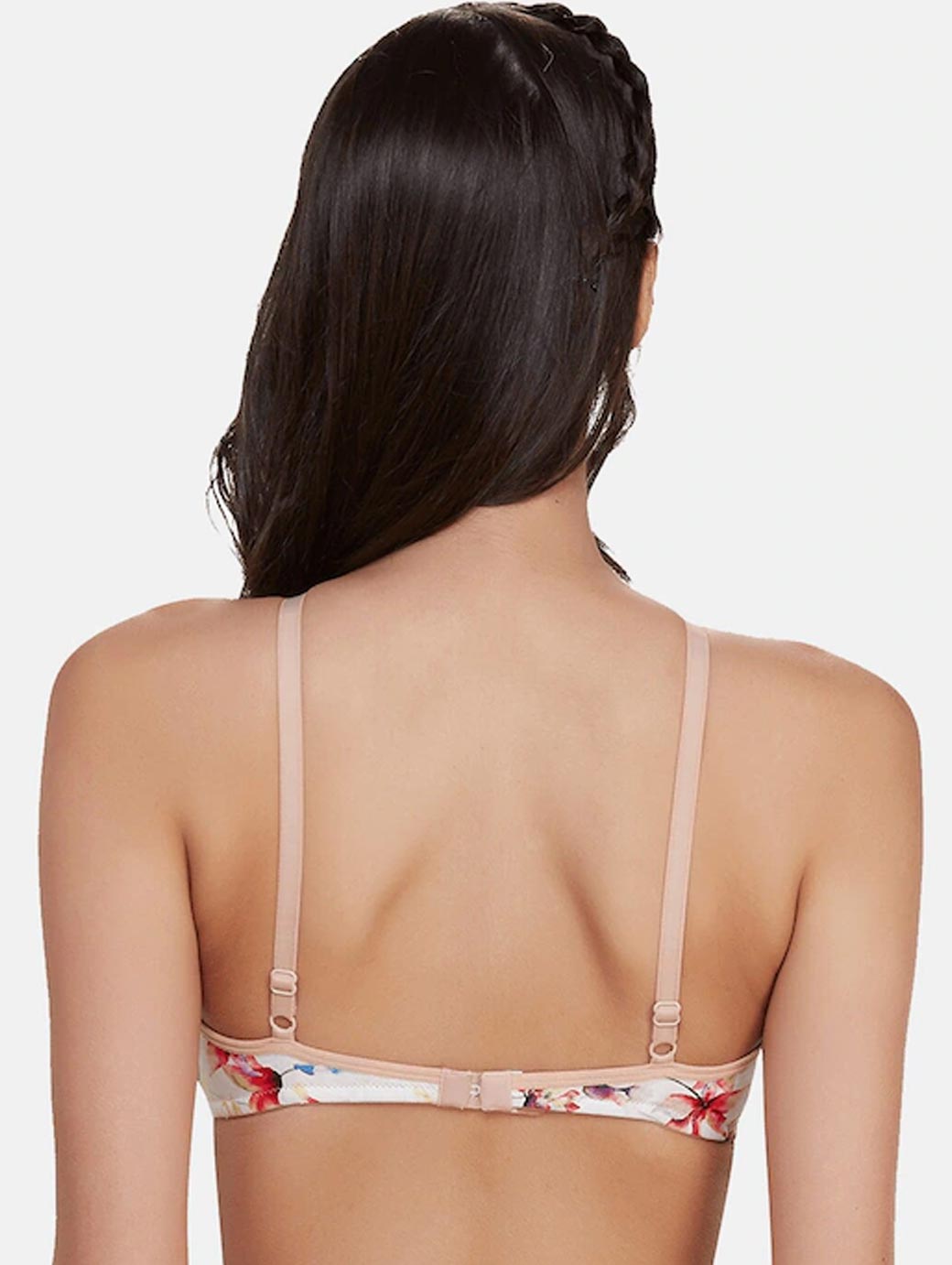 Peach-Coloured printed medium-coverage Bralette bra Lightly Padded and Non-Wired cut and sew cups Regular straps and back closure Back style: Regular Feature: Anti Microbial