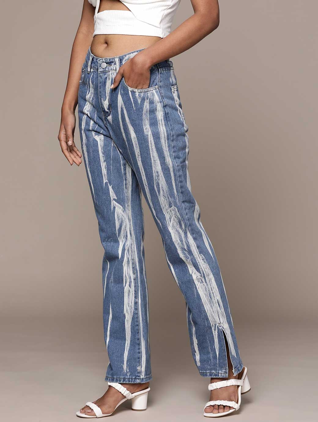 Women Blue Cotton Dyed Relaxed Fit High-Rise Light Fade Jeans
